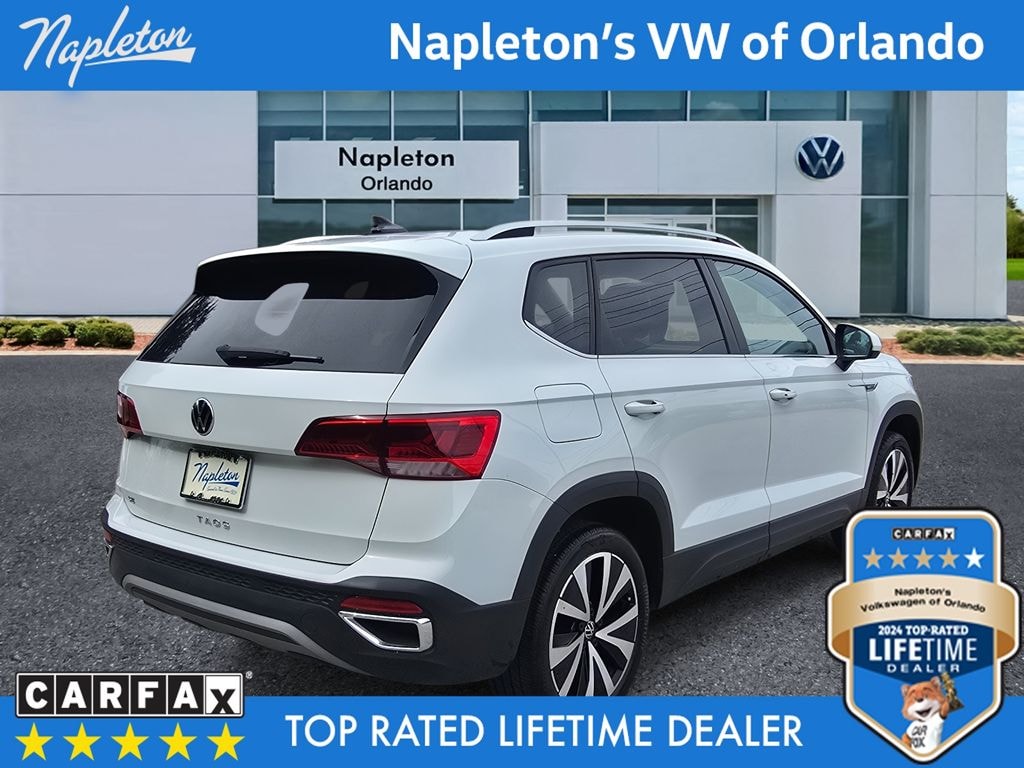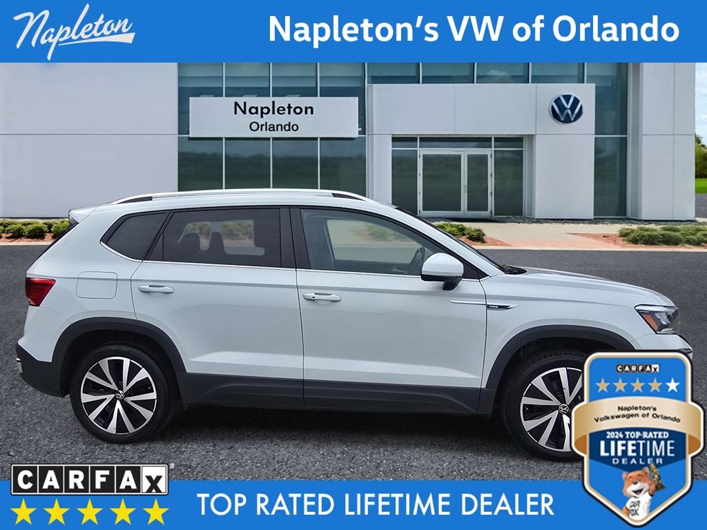 CARFAX One-Owner. Priced below KBB Fair Purchase Price! Pure White 2024 4D Sport Utility Volkswagen Taos 1.5T SE FWD 1.5L I4 Turbocharged DOHC 16V LEV3-SULEV30 158hp 8-Speed Automatic with Tiptronic Clean CARFAX. Odometer is 9579 miles below market average!
