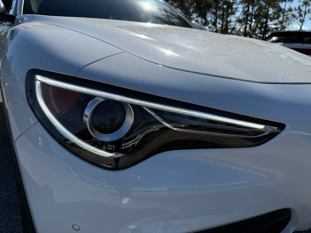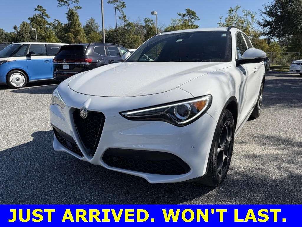 This Stelvio is well equipped with Quick Order Package 22M Sprint, 4-Wheel Disc Brakes, 8 Speakers, ABS brakes, Air Conditioning, AM/FM radio: SiriusXM, Apple CarPlay/Android Auto, Auto-dimming door mirrors, Auto-dimming Rear-View mirror, Automatic temperature control, Bumpers: body-color, Compass, Driver door bin, Driver vanity mirror, Dual front impact airbags, Dual front side impact airbags, Emergency communication system: SiriusXM Guardian - included trial, Four wheel independent suspension, Front anti-roll bar, Front Bucket Seats, Front Center Armrest, Front dual zone A/C, Front reading lights, Garage door transmitter, Heated door mirrors, Memory seat, Navigation System, Power door mirrors, Power driver seat, Power steering, Power windows, Rear window defroster, Speed control, Speed-sensing steering, Spoiler, Traction control, Turn signal indicator mirrors, 3.73 Axle Ratio, Alloy wheels, Auto High-beam Headlights, Brake assist, Delay-off headlights, Electronic Stability Control, Fully automatic headlights, Heated front seats, Heated rear seats, Heated steering wheel, High intensity discharge headlights: Bi-Xenon, Illuminated entry, Knee airbag, Leather Seats, Leather Shift Knob, Leather steering wheel, Low tire pressure warning, Occupant sensing airbag, Outside temperature display, Overhead airbag, Overhead console, Panic alarm, ParkView Rear Back-Up Camera, Passenger door bin, Passenger vanity mirror, Power Liftgate, Power passenger seat, Radio data system, Radio: AM/FM/HD 8.8" w/Navigation, Rain sensing wipers, Rear anti-roll bar, Rear audio controls, Rear fog lights, Rear reading lights, Rear seat center armrest, Rear window wiper, Remote keyless entry, Security system, Speed-Sensitive Wipers, Split folding rear seat, Sport steering wheel, Steering wheel mounted audio controls, Tachometer, Telescoping steering wheel, Tilt steering wheel, Trip computer, Variably intermittent wipers, and Wheels: 18" x 8.0" Multi Spoke.