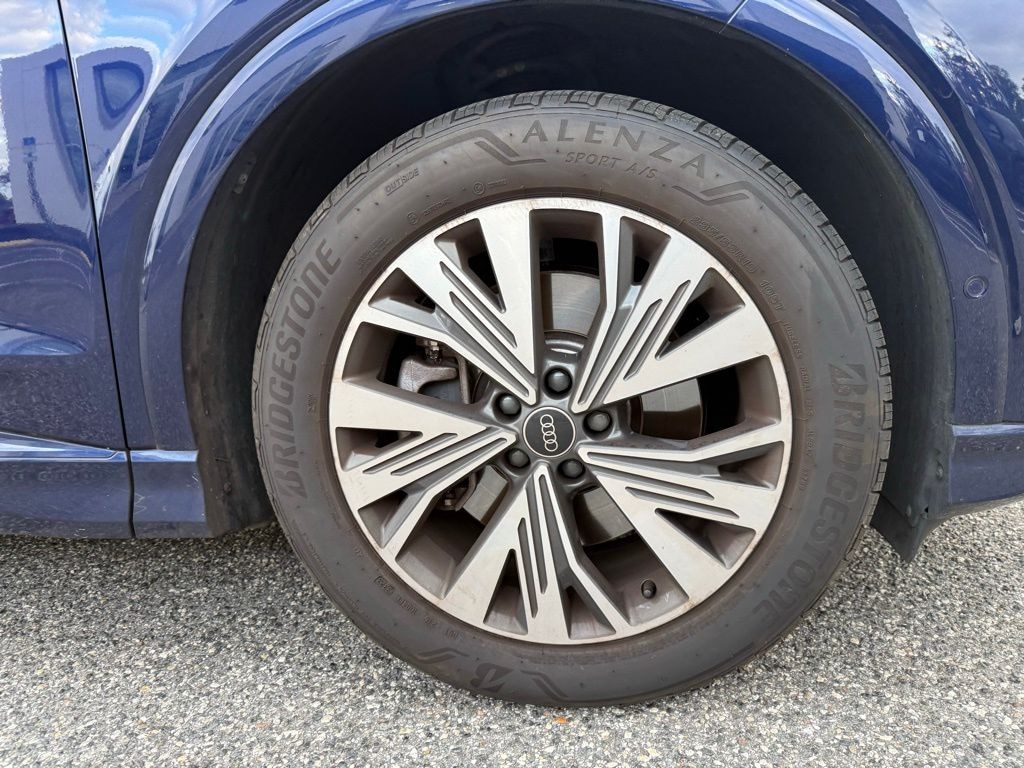 This Q4 e-tron is well equipped with 8 Speakers, Air Conditioning, Brake assist, Electronic Stability Control, Exterior Parking Camera Rear, Illuminated entry, Panic alarm, Power driver seat, Power moonroof: Panoramic, Power windows, Radio data system, Radio: Audi Sound System, Rain sensing wipers, Rear air conditioning, Rear reading lights, Remote keyless entry, Security system, Speed control, ABS brakes, Alloy wheels, Auto High-beam Headlights, Automatic temperature control, Bumpers: body-color, Delay-off headlights, Driver door bin, Driver vanity mirror, Dual front impact airbags, Dual front side impact airbags, Emergency communication system: Audi connect CARE, Four wheel independent suspension, Front anti-roll bar, Front Bucket Seats, Front Center Armrest, Front dual zone A/C, Front reading lights, Fully automatic headlights, Genuine wood dashboard insert, Heated door mirrors, Heated Front Seats, Heated front seats, Leather Seating Surfaces, Leather steering wheel, Low tire pressure warning, Occupant sensing airbag, Outside temperature display, Overhead airbag, Overhead console, Passenger door bin, Passenger vanity mirror, Power door mirrors, Power Liftgate, Power steering, Rear anti-roll bar, Rear seat center armrest, Rear window defroster, Rear window wiper, Speed-sensing steering, Split folding rear seat, Spoiler, Steering wheel mounted audio controls, TBD Axle Ratio, Telescoping steering wheel, Tilt steering wheel, Traction control, Trip computer, Turn signal indicator mirrors, Variably intermittent wipers, and Wheels: 19" 5-W-Spoke Aero Design.