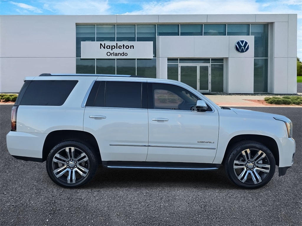 This Yukon is well equipped with Enhanced Driver Alert Package (Forward Collision Alert Sensor Indicator, Intellibeam Automatic High Beam On/Off Headlamps, Lane Keep Assist, and Low Speed Forward Automatic Braking), Interior Protection Package (LPO) (All-Weather Cargo Mat (LPO) and All-Weather Floor Mats), License Plate Front Mounting Package, Magnetic Ride Control Suspension Package, Memory Package, Open Road Package (Power Tilt-Sliding Sunroof w/Express-Open/Close and Rear Seat Blu-Ray/DVD Entertainment System), Preferred Equipment Group 5SA (17" Disc/Disc VAC Power Brakes, 5 Auxiliary 12-volt Power Outlets, Black Assist Steps w/Chrome Strip, Hands Free Power Liftgate, Heated Leather-Wrapped Steering Wheel, Inside Rear-View Auto-Dimming Mirror, Integrated Trailer Brake Controller, OnStar Basic Plan For 5 Years, OnStar w/4G LTE, Passive Entry System, Power Release Second Row Bucket Seats, Power Tilt & Telescopic Steering Column, Power-Adjustable Pedals For Accelerator & Brake, Push Button Keyless Start, Rear Cross-Traffic Alert, Side Blind Zone Alert w/Lane Change Alert, Universal Home Remote, Wireless Charging, and Remote Keyless Entry), Navigation System, 10 Speakers, 3.23 Axle Ratio, 3rd row seats: split-bench, 4-Wheel Disc Brakes, ABS brakes, Adaptive suspension, Adjustable pedals, Air Conditioning, Alloy wheels, AM/FM radio: SiriusXM, Apple CarPlay/Android Auto, Auto High-beam Headlights, Auto-dimming door mirrors, Auto-dimming Rear-View mirror, Automatic temperature control, Bodyside moldings, Bose Centerpoint Premium 10-Speaker Surround Sound, Brake assist, Bumpers: body-color, CD Player, CD player, Compass, Delay-off headlights, Driver door bin, Driver vanity mirror, Dual front impact airbags, Dual front side impact airbags, Electronic Stability Control, Emergency communication system: OnStar Guidance, Exterior Parking Camera Rear, Front anti-roll bar, Front Bucket Seats, Front Center Armrest, Front dual zone A/C, Front fog lights, Front reading lights, Front wheel independent suspension, Full-Feature Reclining Bucket Seats, Fully automatic headlights, Garage door transmitter, Genuine wood console insert, Genuine wood dashboard insert, Genuine wood door panel insert, Heads-Up Display, Heated & Ventilated Driver & Front Passenger Seats, Heated door mirrors, Heated front seats, Heated rear seats, Heated steering wheel, High-Intensity Discharge Headlights, Illuminated entry, Leather Shift Knob, Low tire pressure warning, Memory seat, NavTraffic, Occupant sensing airbag, Outside temperature display, Overhead airbag, Overhead console, Panic alarm, Passenger door bin, Passenger vanity mirror, Pedal memory, Perforated Leather-Appointed Seat Trim, Power door