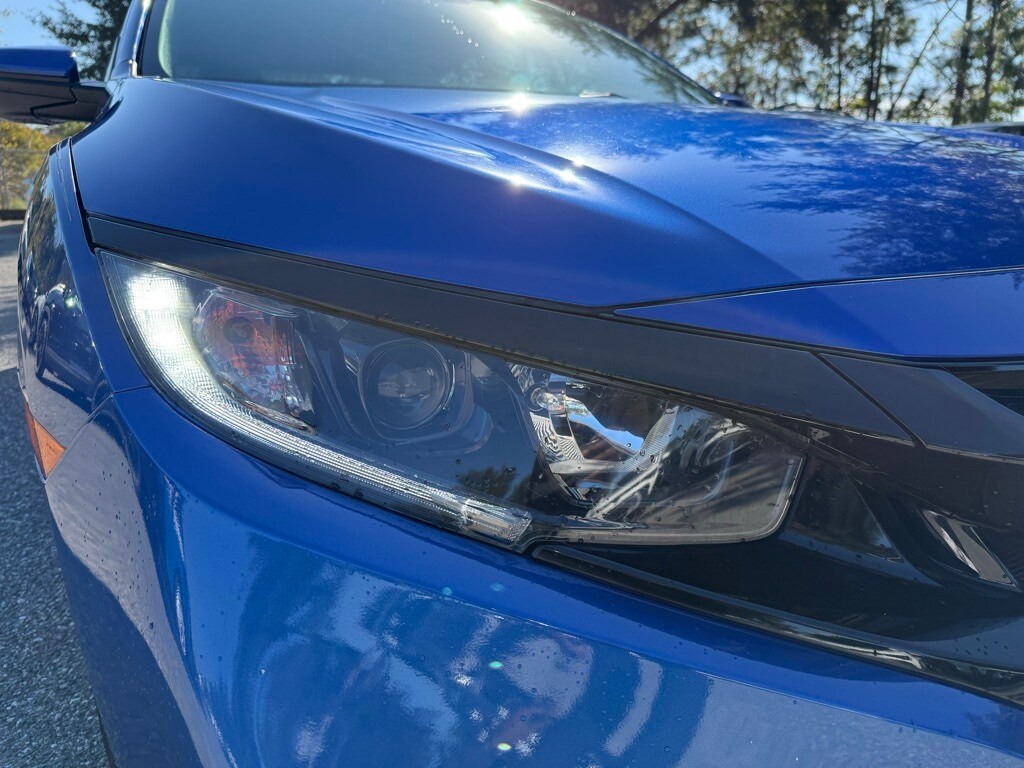 This Civic is well equipped with 4-Wheel Disc Brakes, Adaptive Cruise Control: Adaptive Cruise Control (ACC) with Low-Speed Follow, Air Conditioning, AM/FM radio, Auto High-beam Headlights, Automatic temperature control, Brake assist, Delay-off headlights, Driver door bin, Dual front side impact airbags, Forward collision: Collision Mitigation Braking System (CMBS) + FCW mitigation, Four wheel independent suspension, Front Bucket Seats, Low tire pressure warning, Occupant sensing airbag, Panic alarm, Passenger vanity mirror, Power steering, Radio data system, Split folding rear seat, Tachometer, Tilt steering wheel, Traction control, 8 Speakers, ABS brakes, Alloy wheels, Apple CarPlay/Android Auto, Bumpers: body-color, Cloth Seat Trim, Driver vanity mirror, Dual front impact airbags, Electronic Stability Control, Emergency communication system: HondaLink, Exterior Parking Camera Rear, Front anti-roll bar, Front Center Armrest, Front fog lights, Front reading lights, Fully automatic headlights, Illuminated entry, Lane departure: Lane Keeping Assist System (LKAS) active, Leather Shift Knob, Outside temperature display, Overhead airbag, Passenger door bin, Power door mirrors, Power windows, Radio: 180-Watt AM/FM Audio System, Rear anti-roll bar, Rear window defroster, Remote keyless entry, Security system, Speed control, Speed-sensing steering, Spoiler, Steering wheel mounted audio controls, Telescoping steering wheel, Trip computer, and Wheels: 18" Alloy w/Gloss Black Inserts.