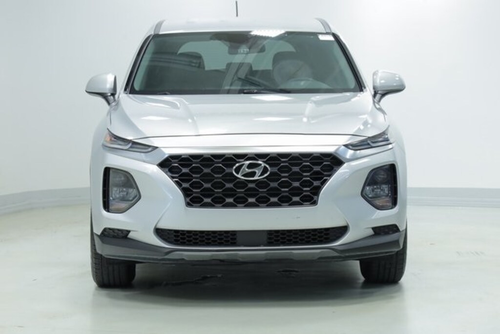 This Santa Fe is well equipped with Santa Fe SE, 4D Sport Utility, 2.4L I4 DGI DOHC 16V LEV3-ULEV70 185hp, 8-Speed Automatic with SHIFTRONIC, FWD, Symphony Silver, 17" x 7.0J Alloy Wheels, 4-Wheel Disc Brakes, 6 Speakers, ABS brakes, Air Conditioning, Alloy wheels, AM/FM radio, Apple CarPlay & Android Auto, Auto High-beam Headlights, Axle Ratio 3.798, Brake assist, Bumpers: body-color, Cargo Net, Carpeted Floor Mats, Delay-off headlights, Driver door bin, Driver vanity mirror, Dual front impact airbags, Dual front side impact airbags, Electronic Stability Control, Exterior Parking Camera Rear, First Aid Kit, Four wheel independent suspension, Front anti-roll bar, Front Bucket Seats, Front Center Armrest, Front reading lights, Fully automatic headlights, Illuminated entry, Low tire pressure warning, Occupant sensing airbag, Outside temperature display, Overhead airbag, Overhead console, Panic alarm, Passenger door bin, Passenger vanity mirror, Power door mirrors, Power steering, Power windows, Radio: AM/FM/MP3 Display Audio, Rear anti-roll bar, Rear seat center armrest, Rear window defroster, Rear window wiper, Remote keyless entry, Security system, Speed control, Speed-sensing steering, Split folding rear seat, Spoiler, Stain-Resistant Cloth Seating Surfaces, Steering wheel mounted audio controls, Tachometer, Telescoping steering wheel, Tilt steering wheel, Traction control, Trip computer, Variably intermittent wipers, and Wheel Locks.