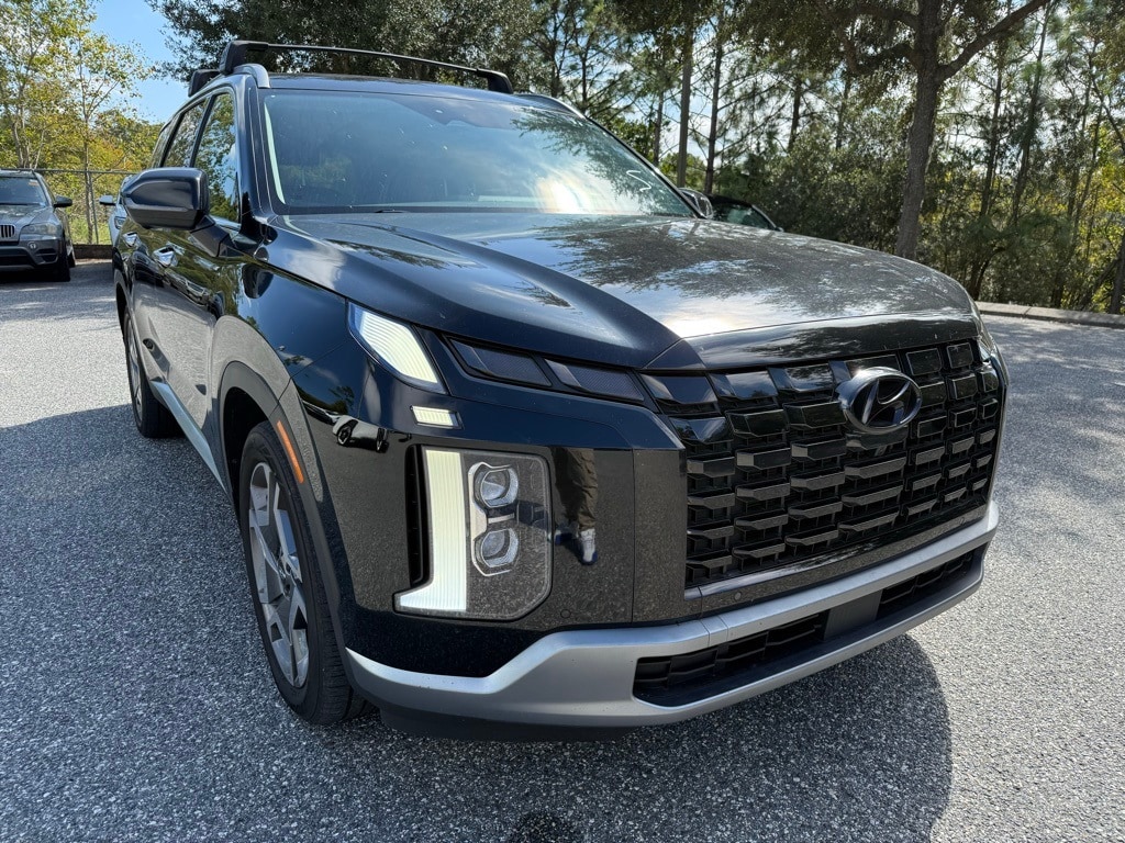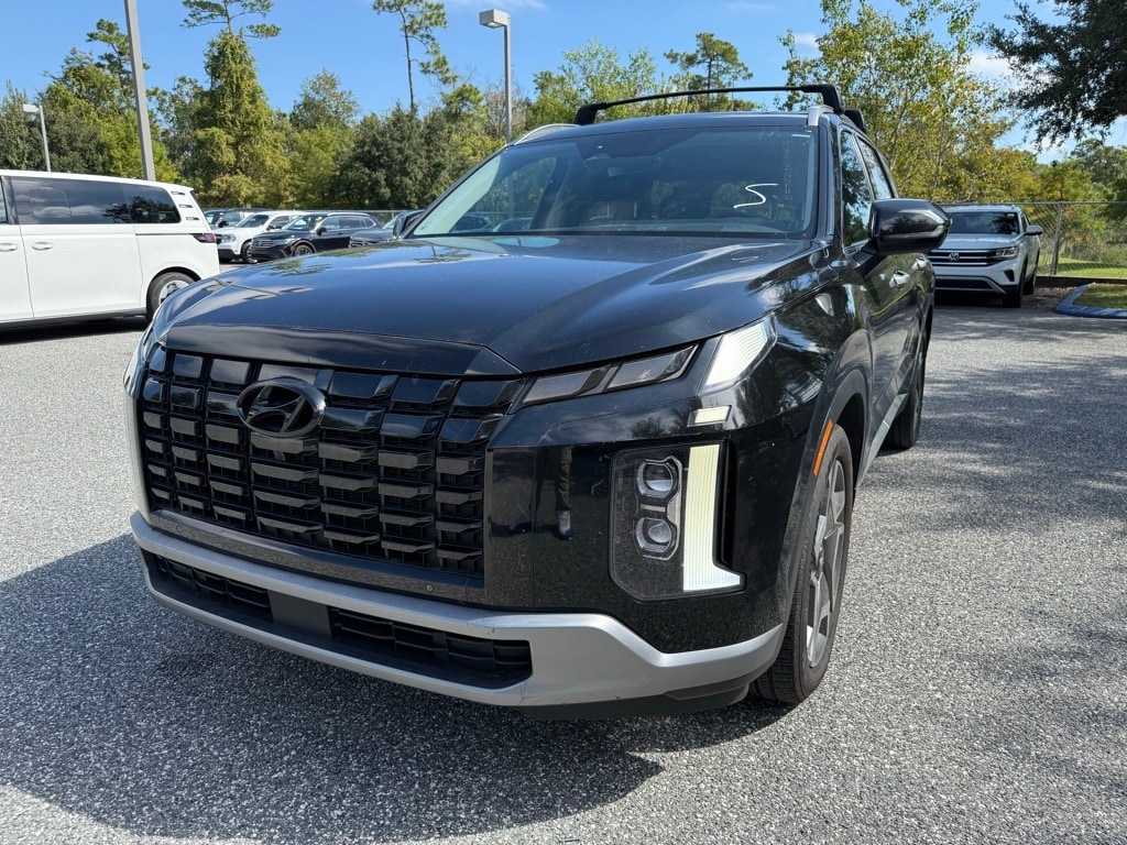 This Palisade is well equipped with Option Group 01, 12 Speakers, 3rd row seats: split-bench, Air Conditioning, AM/FM radio: SiriusXM, Apple CarPlay & Android Auto, Brake assist, Electronic Stability Control, Exterior Parking Camera Rear, Illuminated entry, Memory seat, Navigation System, Panic alarm, Power door mirrors, Power driver seat, Power Liftgate, Power moonroof, Power windows, Rear audio controls, Remote keyless entry, Security system, Turn signal indicator mirrors, 3.510 Axle Ratio, 4-Wheel Disc Brakes, ABS brakes, Alloy wheels, Auto High-beam Headlights, Auto-dimming door mirrors, Auto-dimming Rear-View mirror, Auto-leveling suspension, Automatic temperature control, Bumpers: body-color, Cargo Net, Carpeted Floor Mats, Compass, Delay-off headlights, Driver door bin, Driver vanity mirror, Dual front impact airbags, Dual front side impact airbags, Emergency communication system: Blue Link Connected Car Service (3-year complimentary subscription), Four wheel independent suspension, Front anti-roll bar, Front Bucket Seats, Front Center Armrest, Front dual zone A/C, Front reading lights, Fully automatic headlights, Garage door transmitter: HomeLink, harman/kardon® Speakers, Heads-Up Display, Heated & Ventilated Front Bucket Seats, Heated door mirrors, Heated front seats, Heated rear seats, Heated steering wheel, Knee airbag, Leather Seat Trim, Low tire pressure warning, Occupant sensing airbag, Outside temperature display, Overhead airbag, Overhead console, Passenger door bin, Passenger vanity mirror, Power passenger seat, Power steering, Radio data system, Radio: AM/FM/MP3 Premium Audio System, Rain sensing wipers, Rear air conditioning, Rear anti-roll bar, Rear reading lights, Rear side impact airbag, Rear window defroster, Rear window wiper, Reclining 3rd row seat, Speed control, Speed-sensing steering, Splash Trim, Split folding rear seat, Spoiler, Steering wheel mounted audio controls, Tachometer, Telescoping steering wheel, Tilt steering wheel, Traction control, Trip computer, Variably intermittent wipers, Ventilated front seats, Ventilated rear seats, Wheel Locks, and Wheels: 20" x 7.5J Alloy.