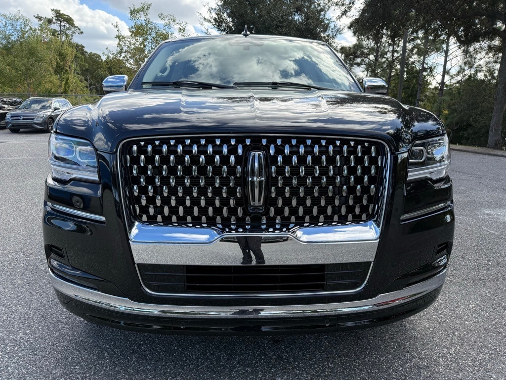 This Lincoln Navigator L is well equipped with Equipment Group 800A Black Label, Heavy-Duty Trailer Tow Package (26mm Radiator, Class IV w/4-Pin & 7-Pin Connectors, Electronic Traction Assist (eLSD), Front Tow Hooks, Pro-Trailer Backup Assist 2.0, Smart Trailer Tow, Tiered Cargo Area Management System, Trailer Brake Controller, and Trailer Sway Control), Adaptive suspension, AM/FM radio: SiriusXM with 360L, Dual front impact airbags, Dual front side impact airbags, Front anti-roll bar, Front Bucket Seats, Front dual zone A/C, Head restraints memory, Heated rear seats, Navigation system: Connected Navigation (1-year trial), Overhead console, Passenger vanity mirror, Pedal memory, Power adjustable front head restraints, Power Liftgate, Power moonroof: Panoramic Vista Roof, Power windows, Radio: Revel Ultima 3D Audio System w/28 Speakers, Rear air conditioning, Rear window defroster, SiriusXM w/360L, Slow Climb Drive Mode, Speed-sensing steering, Split folding rear seat, Steering wheel memory, Steering wheel mounted audio controls, SYNC 4 Communications & Entertainment System, Turn signal indicator mirrors, Ventilated front seats, Voice-Activated Touchscreen Navigation System, 28 Speakers, 2nd Row Htd/Vent Enhanced Massage Seats w/Console, 3.73 Axle Ratio, 3rd row seats: split-bench, 4-Wheel Disc Brakes, ABS brakes, Adjustable pedals, Air Conditioning, Alloy wheels, Apple CarPlay/Android Auto, Audio memory, Auto High-beam Headlights, Auto Start-Stop Technology, Auto tilt-away steering wheel, Auto-dimming door mirrors, Auto-dimming Rear-View mirror, Auto-leveling suspension, Automatic temperature control, Bodyside moldings, Brake assist, Bumpers: body-color, Compass, Delay-off headlights, Driver door bin, Driver vanity mirror, Driver's Seat Mounted Armrest, Electronic Stability Control, Emergency communication system: 911 Assist, Exterior Parking Camera Rear, Floor Carpet/Mats - Espresso w/Dinamica Suede, Four wheel independent suspension, Front fog lights, Front reading lights, Fully automatic headlights, Garage door transmitter, Genuine wood console insert, Genuine wood door panel insert, Headliner - Alpine Dinamica Suede, Heads-Up Display, Heated door mirrors, Heated front seats, Heated steering wheel, HVAC memory, Illuminated entry, Lane Departure Warning System, Leather steering wheel, Leather-Wrapped Interior - Alpine w/Black Stitch, Low tire pressure warning, Memory seat, Occupant sensing airbag, Outside temperature display, Overhead airbag, Pan