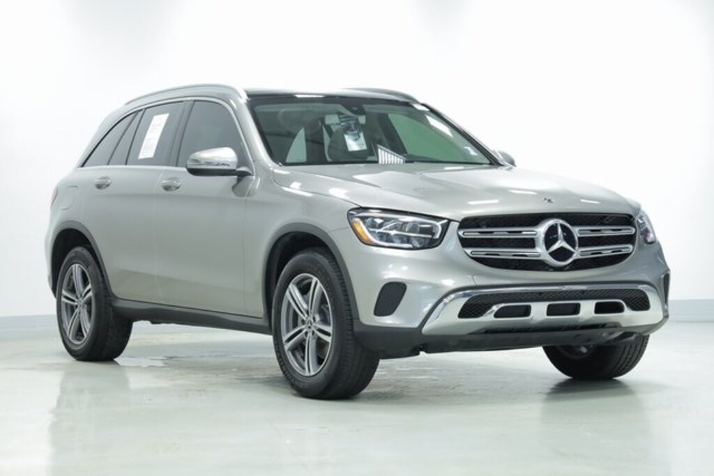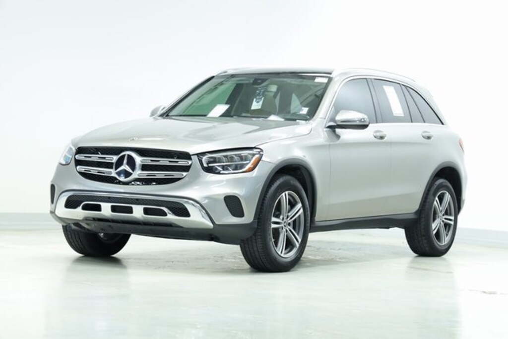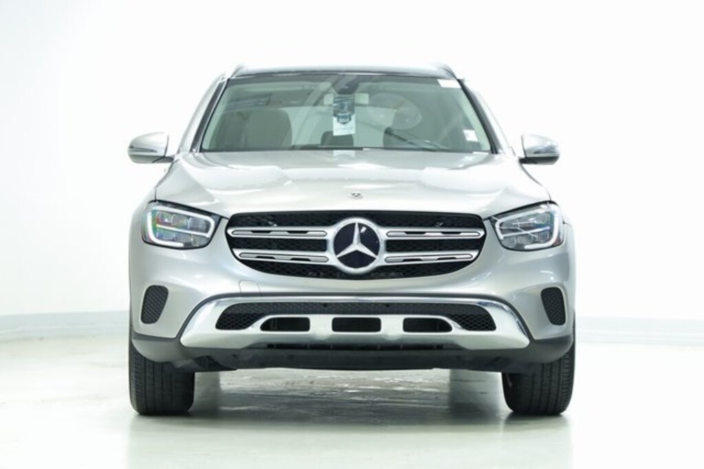 This GLC is well equipped with Premium Package (64-Color Ambient Lighting, Illuminated Door Sills, KEYLESS GO®, and SiriusXM Satellite Radio), GLC 300, 4D Sport Utility, I4, 9-Speed Automatic, RWD, Mojave Silver Metallic, Magma Gray/Black Leatherette, 10.25" Center Touchscreen Display, 3.27 Axle Ratio, 4-Way Lumbar Support, 4-Wheel Disc Brakes, 6 Speakers, ABS brakes, Air Conditioning, Alloy wheels, AM/FM radio, Android Auto®, Apple CarPlay®, Apple CarPlay®/Android Auto®, Auto tilt-away steering wheel, Auto-dimming door mirrors, Auto-dimming Rear-View mirror, Automatic temperature control, Brake assist, Bumpers: body-color, Child-Seat-Sensing Airbag, Delay-off headlights, Driver door bin, Driver vanity mirror, Dual front impact airbags, Dual front side impact airbags, Electrically Adjustable Passenger Seat, Electronic Stability Control, Emergency communication system: eCall Emergency System, Exterior Parking Camera Rear, Four wheel independent suspension, Front anti-roll bar, Front Bucket Seats, Front Center Armrest, Front dual zone A/C, Front reading lights, Fully automatic headlights, Garage door transmitter: Homelink, Genuine wood dashboard insert, Heated door mirrors, Heated Front Bucket Seats, Heated front seats, Illuminated entry, Knee airbag, Leather steering wheel, Low tire pressure warning, MB-Tex Upholstery, MBUX Voice Control, Memory seat, Occupant sensing airbag, Outside temperature display, Overhead airbag, Overhead console, Panic alarm, Passenger door bin, Passenger vanity mirror, Power door mirrors, Power driver seat, Power Liftgate, Power passenger seat, Power steering, Power windows, Radio data system, Radio: MBUX Multimedia System, Rain sensing wipers, Rear anti-roll bar, Rear fog lights, Rear reading lights, Rear seat center armrest, Rear window defroster, Rear window wiper, Remote keyless entry, Roof rack: rails only, Security system, Smartphone Integration, Speed control, Speed-sensing steering, Split folding rear seat, Spoiler, Steering wheel memory, Steering wheel mounted audio controls, Tachometer, Telescoping steering wheel, Tilt steering wheel, Traction control, Trip computer, Turn signal indicator mirrors, Variably intermittent wipers, Weather band radio, and Wheels: 18" Split 5-Spoke.