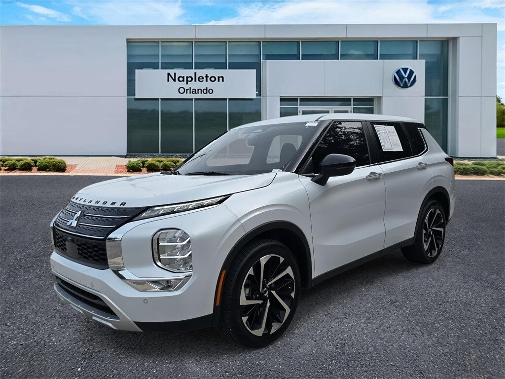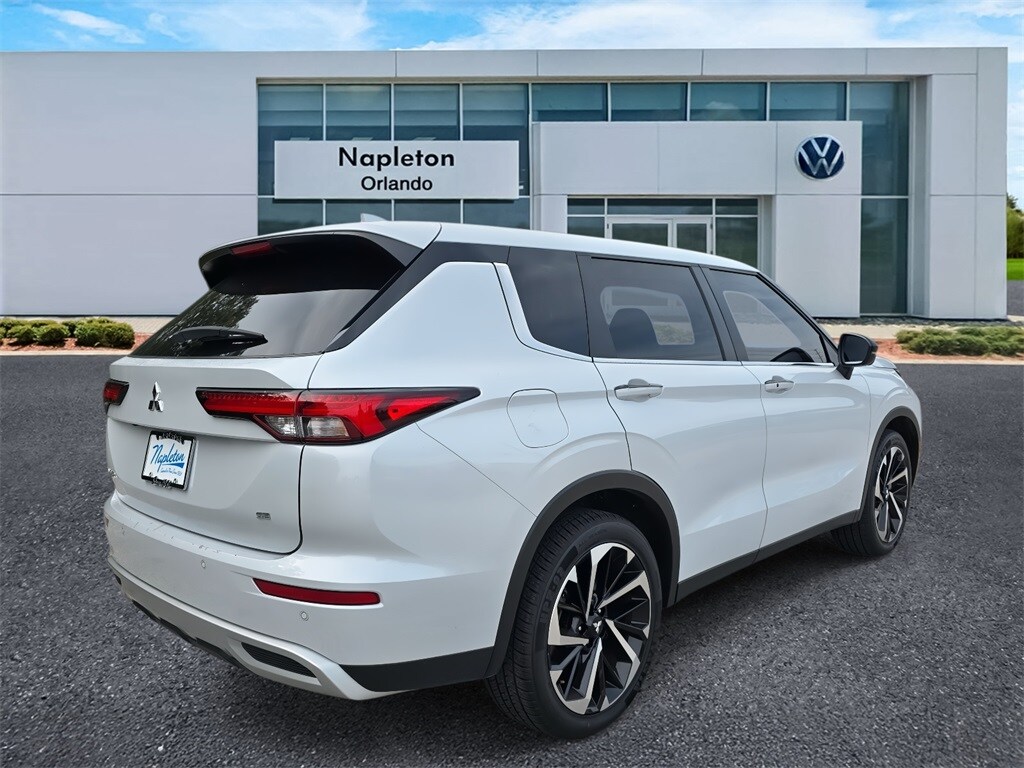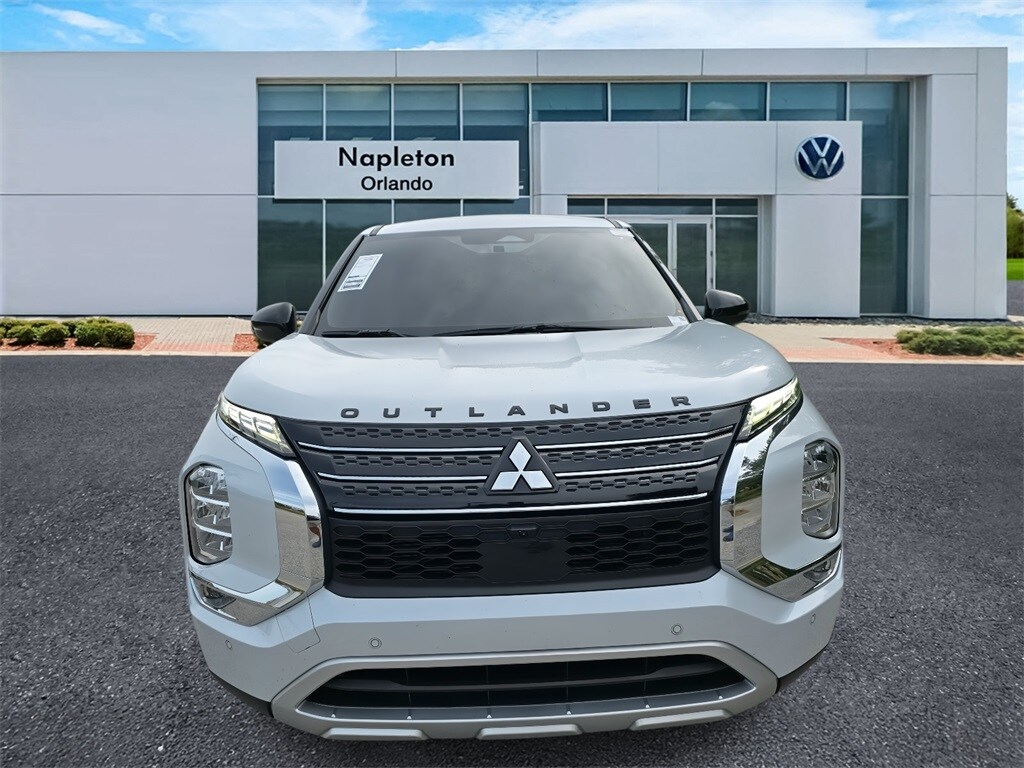 This Outlander is well equipped with Outlander SE, 4D Sport Utility, 2.5L 4-Cylinder DOHC, CVT, FWD, White Diamond, Black w/Leather Seat Trim, ABS brakes, Active Cruise Control, Air Conditioning, Alloy wheels, Android Auto & Apple CarPlay, Automatic temperature control, Electronic Stability Control, Front dual zone A/C, Heated door mirrors, Heated Front Bucket Seats, Heated front seats, Illuminated entry, Low tire pressure warning, Navigation System, Power driver seat, Power Liftgate, Power steering, Power windows, Rear window defroster, Remote keyless entry, Traction control, 3rd row seats: split-bench, 4-Wheel Disc Brakes, 5.694 Axle Ratio, 6 Speakers, AM/FM radio: SiriusXM, Auto High-beam Headlights, Brake assist, Bumpers: body-color, Driver door bin, Driver vanity mirror, Dual front impact airbags, Dual front side impact airbags, Emergency communication system: Mitsubishi Connect w/ 24-month trial, Exterior Parking Camera Rear, Four wheel independent suspension, Front anti-roll bar, Front Bucket Seats, Front Center Armrest w/Storage, Front fog lights, Front reading lights, Fully automatic headlights, Knee airbag, Leather Shift Knob, Leather steering wheel, Occupant sensing airbag, Outside temperature display, Overhead airbag, Overhead console, Panic alarm, Passenger door bin, Passenger vanity mirror, Power door mirrors, Radio data system, Radio: AM/FM 9.0" Navigation w/Smartphone Link, Rain sensing wipers, Rear anti-roll bar, Rear seat center armrest, Rear side impact airbag, Rear window wiper, Reclining 3rd row seat, Security system, Speed control, Speed-Sensitive Wipers, Split folding rear seat, Spoiler, Steering wheel mounted audio controls, Synthetic Leather Seat Trim, Tachometer, Telescoping steering wheel, Tilt steering wheel, Trip computer, Turn signal indicator mirrors, Variably intermittent wipers, and Wheels: 20" Two-Tone Alloy.