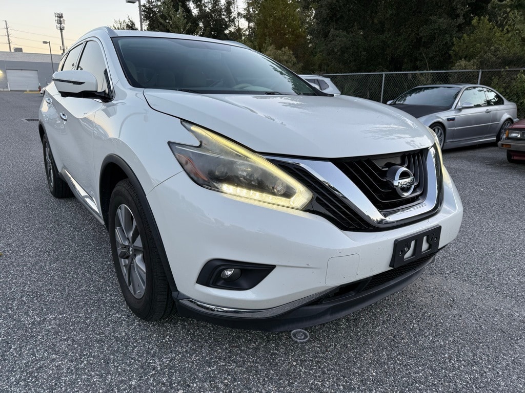 This Murano is well equipped with Moonroof Package (Power Panoramic Moonroof), 11 Speakers, Air Conditioning, AM/FM radio: SiriusXM, AM/FM/CD/MP3/WMA Audio System, Apple CarPlay/Android Auto, Blind Spot Warning, Brake assist, Compass, Illuminated entry, Memory seat, Navigation System, Panic alarm, Power driver seat, Power Liftgate, Power windows, Remote keyless entry, Security system, Speed control, 4-Wheel Disc Brakes, 4.667 Axle Ratio, ABS brakes, Activation Disclaimer, Alloy wheels, Auto-dimming Rear-View mirror, Automatic temperature control, Bumpers: body-color, Carpeted Floor Mats & Carpeted Cargo Mat, CD player, Child-Seat-Sensing Airbag, Delay-off headlights, Driver door bin, Driver vanity mirror, Dual front impact airbags, Dual front side impact airbags, Electronic Stability Control, Four wheel independent suspension, Front anti-roll bar, Front Bucket Seats, Front Center Armrest, Front dual zone A/C, Front fog lights, Front reading lights, Fully automatic headlights, Garage door transmitter: HomeLink, Heated door mirrors, Heated Front Bucket Seats, Heated front seats, Heated rear seats, Heated steering wheel, Knee airbag, Leather Appointed Seat Trim, Leather Shift Knob, Low tire pressure warning, Occupant sensing airbag, Outside temperature display, Overhead airbag, Overhead console, Passenger door bin, Passenger vanity mirror, Power door mirrors, Power passenger seat, Power steering, Radio data system, Rear anti-roll bar, Rear reading lights, Rear seat center armrest, Rear window defroster, Rear window wiper, Roof rack: rails only, Special Paint - Pearl White, Speed-sensing steering, Speed-Sensitive Wipers, Split folding rear seat, Spoiler, Steering wheel mounted audio controls, Tachometer, Telescoping steering wheel, Tilt steering wheel, Traction control, Trip computer, Turn signal indicator mirrors, Variably intermittent wipers, and Wheels: 18" Machined Aluminum-Alloy.