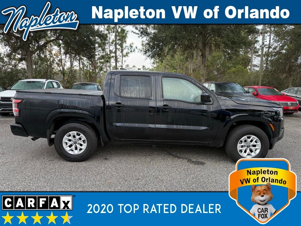 The interior of this Frontier SV is designed with your comfort and convenience in mind. Enjoy the premium cloth seating, power driver's seat, and steering wheel-mounted audio controls, which allow you to stay connected and in control. The integrated technology, including Apple CarPlay and Android Auto, keeps you entertained and informed on every journey.