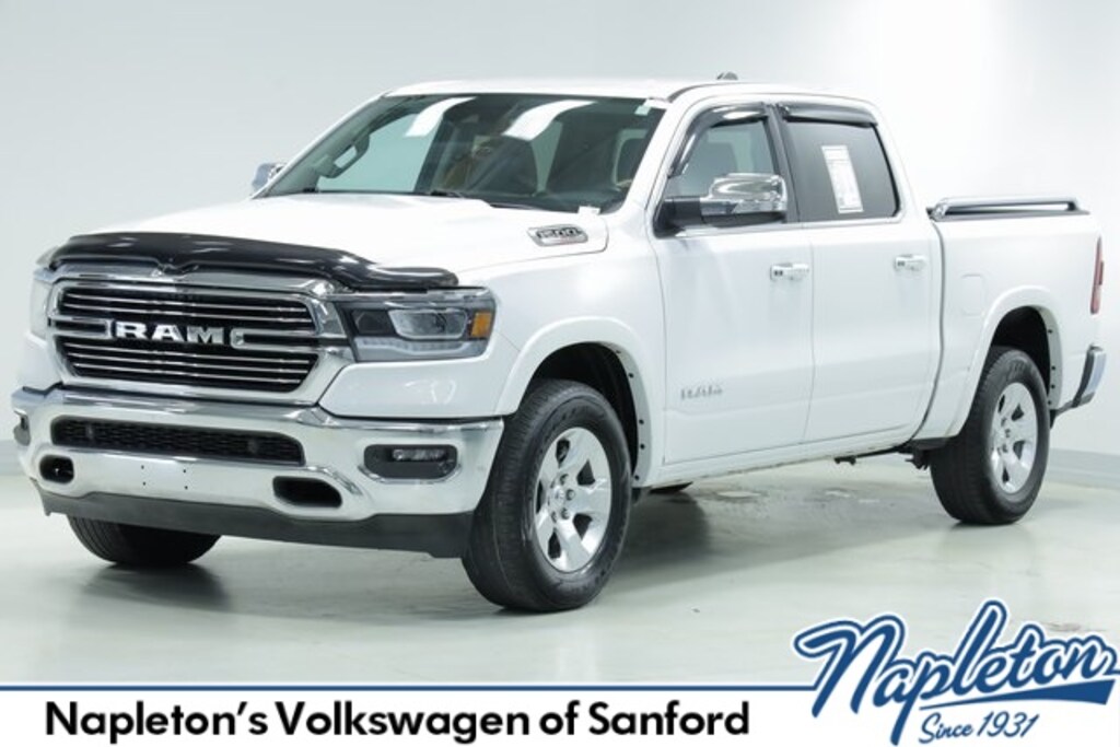 This 1500 is well equipped with Chrome Appearance Group (Bright Day Light Opening Moldings, Chrome Tow Hooks, and Wheel to Wheel Side Steps), Laramie Level I Equipment Group (2nd Row In Floor Storage Bins, Auto High Beam Headlamp Control, Blind Spot & Cross Path Detection, Foam Bottle Insert (Door Trim Panel), ParkSense Front/Rear Park Assist w/Stop, Rain Sensitive Windshield Wipers, and Remote Tailgate Release), Quick Order Package 28H Laramie, #1 Seat Foam Cushion, 10 Speakers, 3 Rear Seat Head Restraints, 3.21 Rear Axle Ratio, 4 Way Front Headrests, 4-Wheel Disc Brakes, 48V Belt Starter Generator, 4G LTE Wi-Fi Hot Spot, 8.4" Touchscreen Display, ABS brakes, Adjustable pedals, Air Conditioning, Alloy wheels, AM/FM radio: SiriusXM, Apple CarPlay, Apple CarPlay/Android Auto, Audio memory, Auto-dimming door mirrors, Auto-Dimming Exterior Driver Mirror, Auto-dimming Rear-View mirror, Automatic temperature control, Brake assist, Bumpers: chrome, Chrome Exterior Mirrors, Compass, Connectivity - US/Canada, Convex Wide-Angle Mirror Insert, Delay-off headlights, Driver door bin, Driver Seat Memory, Driver vanity mirror, Dual front impact airbags, Dual front side impact airbags, Electronic Stability Control, Exterior Mirrors Courtesy Lamps, Exterior Mirrors w/Heating Element, Exterior Mirrors w/Memory, Exterior Mirrors w/Supplemental Signals, For Details, Visit DriveUconnect.com, Front anti-roll bar, Front Center Armrest w/Storage, Front dual zone A/C, Front fog lights, Front reading lights, Front Seat Back Map Pockets, Front wheel independent suspension, Fully automatic headlights, Garage door transmitter, Global Telematics Box Module (TBM), Google Android Auto, GPS Antenna Input, Heated door mirrors, Heated Front Seats, Heated front seats, Heated Steering Wheel, Heated steering wheel, Heavy-Duty Engine Cooling, Illuminated entry, Integrated Center Stack Radio, Leather steering wheel, Leather Trim 40/20/40 Bench Seat, Low tire pressure warning, Memory seat, MOPAR Front & Rear Rubber Floor Mats, Occupant sensing airbag, Outside temperature display, Overhead airbag, Overhead console, Panic alarm, ParkView Rear Back-Up Camera, Passenger door bin, Passenger vanity mirror, Pedal memory, Power 2-Way Driver Lumbar Adjust, Power 2-Way Passenger Lumbar Adjust, Power 8-Way Driver & Passenger Seats, Power door mirrors, Power driver seat, Power passenger seat, Power steering, Power windows, Power-Folding Mirrors, Radio data system, Radio: Uconnect 5 W w/8.4" Display, Rear 60/40 Folding Seat, Rear anti-roll bar, Rear seat center armrest, Rear step bumper, Rear Underseat Compartment Storage (DISC), Rear window defroster, Remote keyless entry, Security system, SiriusXM Radio Service, Speed control, Split folding rear seat, Steering wheel mounted audio controls, Tachometer, Telescoping steering wheel, Tilt steering wheel, Traction control, Trailer Brake Control, Trip computer, Turn signal indicator mirrors, Variably intermittent wipers, Ventilated Front Seats, Ventilated front seats, Voltmeter, and Wheels: 18" x 8" Aluminum Base Painted.