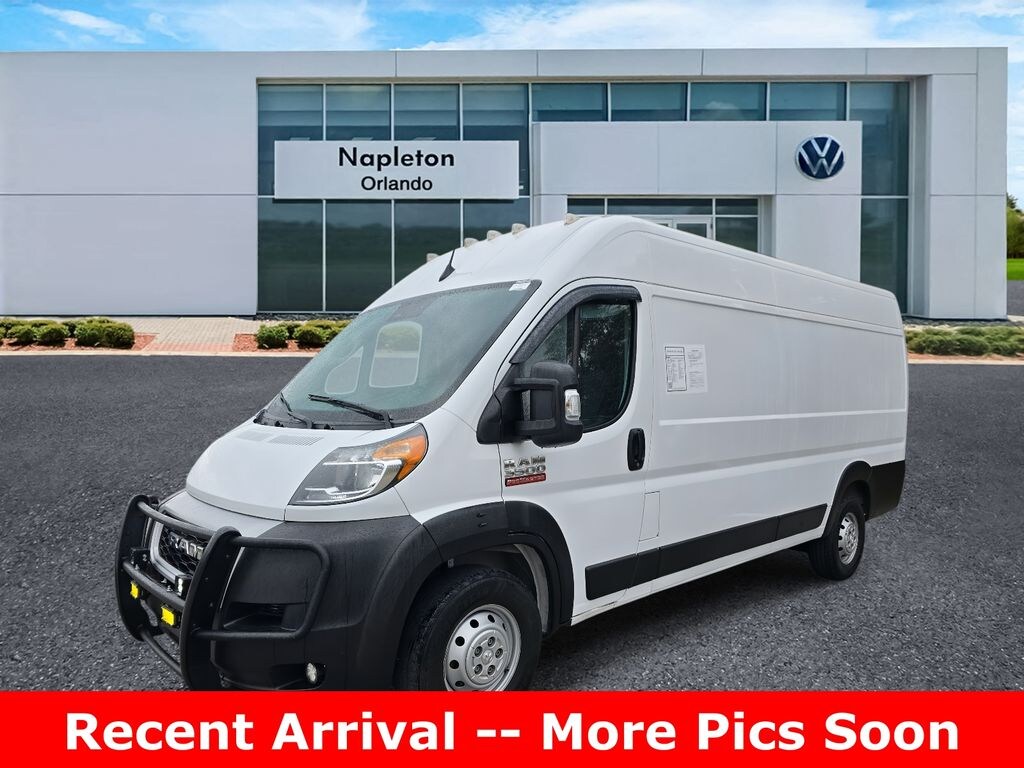 This ProMaster 3500 is well equipped with Quick Order Package 22A, ABS brakes, AM/FM radio: SiriusXM, Apple CarPlay, Bodyside moldings, For More Info, Call 800-643-2112, Front anti-roll bar, Google Android Auto, Low tire pressure warning, Manufacturer's Statement of Origin, Power steering, Radio: Uconnect 5 w/7" Display, Remote keyless entry, Tachometer, 4 Speakers, 4-Wheel Disc Brakes, 4.08 Axle Ratio, 4G LTE Wi-Fi Hot Spot, Adaptive Cruise Control w/Stop & Go (DISC), Air Conditioning, Apple CarPlay/Android Auto, Black/Gray Seats, Blind Spot & Cross Path Detection, Brake assist, Center Wheel Cap, Cloth Bucket Seats, Connectivity - US/Canada, Driver door bin, Driver Seat Armrest, Driver's Seat Mounted Armrest, Dual front impact airbags, Dual front side impact airbags, Electronic Stability Control, For Details, Visit DriveUconnect.com, Front Bucket Seats, Front License Plate Bracket, Front reading lights, Front wheel independent suspension, Global Telematics Box Module (TBM), GPS Antenna Input, Heavy Duty Suspension, Illuminated entry, Integrated Center Stack Radio, Integrated Voice Command w/Bluetooth, MOPAR Cargo Compartment Floor Mat, Outside temperature display, Overhead airbag, ParkView Rear Back-Up Camera, Passenger door bin, Power Folding/Heated Mirrors, Power windows, Rear anti-roll bar, Rear Cargo LED Lamp, SiriusXM Radio Service, Steering wheel mounted audio controls, Telescoping steering wheel, Traction control, Trip computer, Turn signal indicator mirrors, Variably intermittent wipers, and Wheels: 16" x 6.0" Steel.