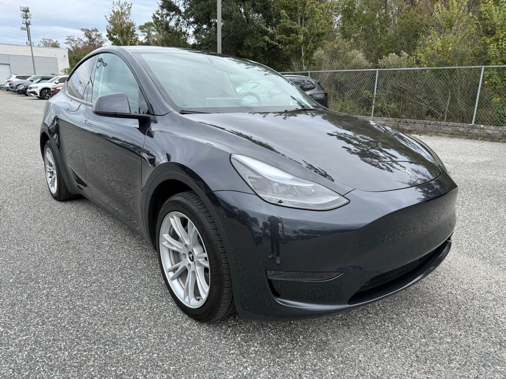 This Model Y is well equipped with Audio memory, Auto tilt-away steering wheel, Automatic temperature control, Driver door bin, Driver vanity mirror, Front dual zone A/C, Illuminated entry, Memory seat, Navigation System, Outside temperature display, Power windows, Radio: Custom Audio System w/7 Speakers, Rear seat center armrest, 4-Wheel Disc Brakes, 5 Seat Interior, 7 Speakers, 9.0 Axle Ratio, ABS brakes, Air Conditioning, Alloy wheels, Auto High-beam Headlights, Auto-dimming door mirrors, Auto-dimming Rear-View mirror, Brake assist, Bumpers: body-color, Compass, Delay-off headlights, Dual front impact airbags, Dual front side impact airbags, Electronic Stability Control, Emergency communication system, Exterior Parking Camera Rear, Four wheel independent suspension, Front anti-roll bar, Front Bucket Seats, Front Center Armrest, Front fog lights, Front reading lights, Fully automatic headlights, Genuine wood dashboard insert, Heated door mirrors, Heated front seats, Heated rear seats, Heated steering wheel, HVAC memory, Knee airbag, Lane Departure Warning System, Low tire pressure warning, Occupant sensing airbag, Overhead airbag, Passenger door bin, Passenger vanity mirror, Power door mirrors, Power driver seat, Power Liftgate, Power passenger seat, Power steering, Radio data system, Rain sensing wipers, Rear reading lights, Rear window defroster, Security system, Speed control, Speed-sensing steering, Split folding rear seat, Steering wheel memory, Steering wheel mounted A/C controls, Steering wheel mounted audio controls, Telescoping steering wheel, Tilt steering wheel, Traction control, Trip computer, Variably intermittent wipers, Vegan Leather Seat Trim, and Wheels: 19" x 9.5" Gemini Dark.