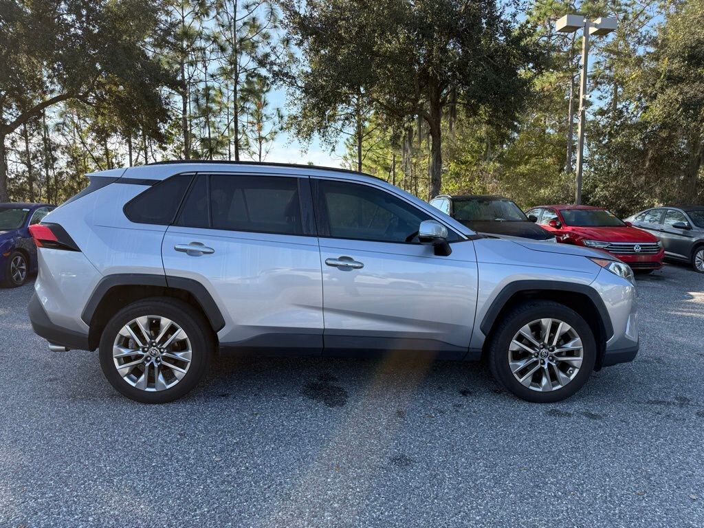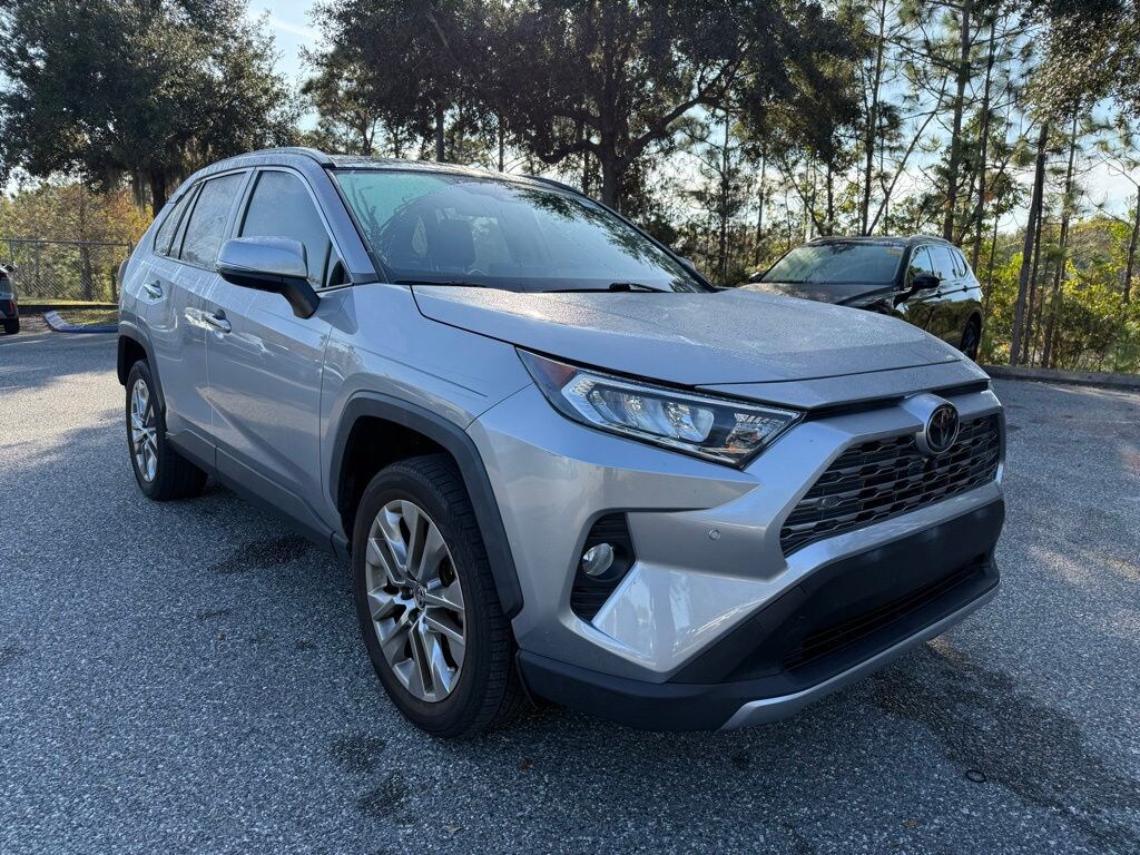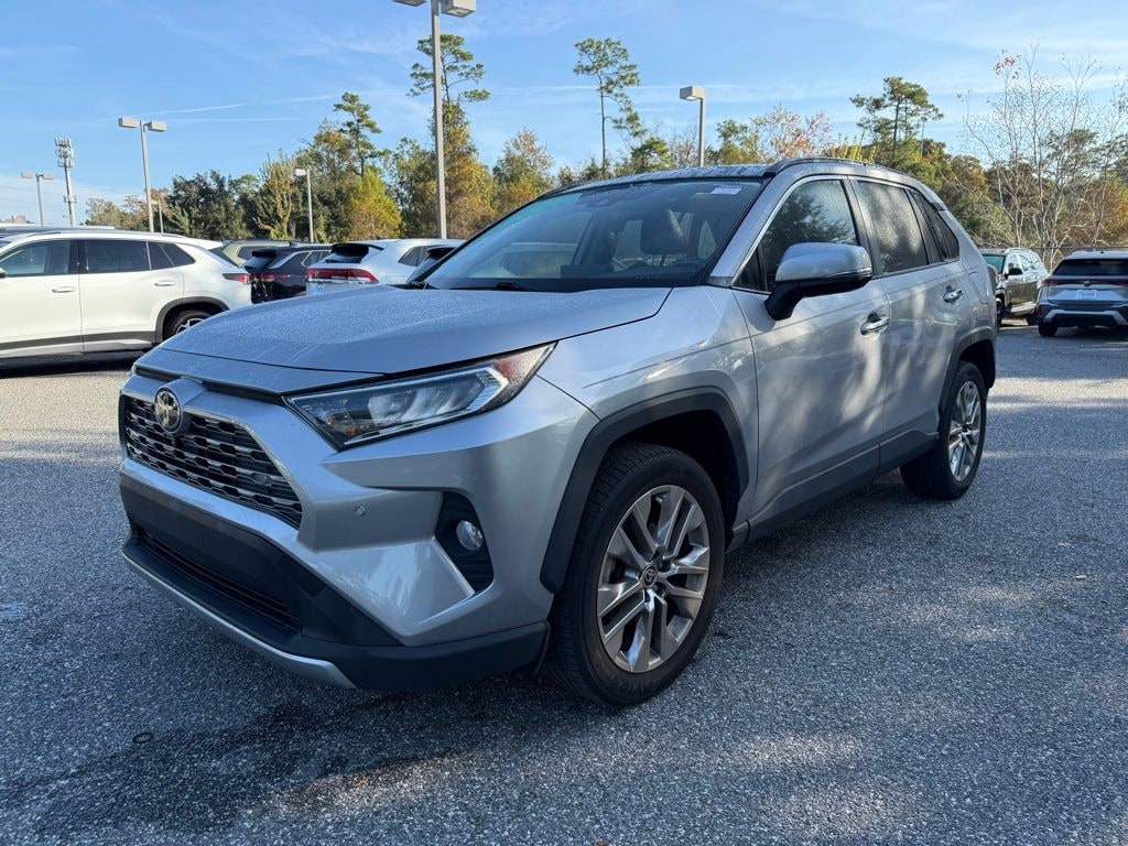 This RAV4 is well equipped with Limited Grade Advanced Technology Package (Height-Adjustable Power Liftgate, Panoramic View Monitor, and Wireless Phone Charger), Limited Grade Weather Package (3 Spoke Leather Heated Steering Wheel, Front Seat Heating/Ventilation, Rain Sensing Front Wipers, Rear Seat Heating, and Wiper Deicer), Navigation System, 11 Speakers, 4-Wheel Disc Brakes, ABS brakes, Air Conditioning, Alloy wheels, AM/FM radio: SiriusXM, Apple CarPlay/Android Auto, Auto High-beam Headlights, Auto-dimming Rear-View mirror, Automatic temperature control, Axle Ratio: 3.177, Brake assist, Bumpers: body-color, Delay-off headlights, Driver door bin, Driver vanity mirror, Dual front impact airbags, Dual front side impact airbags, Electronic Stability Control, Emergency communication system, Exterior Parking Camera Rear, Four wheel independent suspension, Front anti-roll bar, Front Bucket Seats, Front Center Armrest, Front dual zone A/C, Front fog lights, Front reading lights, Fully automatic headlights, Garage door transmitter: HomeLink, Heated door mirrors, Heated Front Bucket Seats, Heated front seats, Illuminated entry, Knee airbag, Leather Shift Knob, Low tire pressure warning, Memory seat, Occupant sensing airbag, Outside temperature display, Overhead airbag, Overhead console, Panic alarm, Passenger door bin, Passenger vanity mirror, Power door mirrors, Power driver seat, Power Liftgate, Power moonroof, Power steering, Power windows, Radio data system, Radio: Entune 3.0 Premium Audio w/JBL/Clari-Fi, Rear anti-roll bar, Rear seat center armrest, Rear window defroster, Rear window wiper, Remote keyless entry, Roof rack: rails only, Security system, SofTex Seat Trim, Speed control, Speed-sensing steering, Split folding rear seat, Spoiler, Steering wheel mounted audio controls, Tachometer, Telescoping steering wheel, Tilt steering wheel, Traction control, Trip computer, Turn signal indicator mirrors, Variably intermittent wipers, and Wheels: 19" Multi-Spoke Super Chrome Alloy.