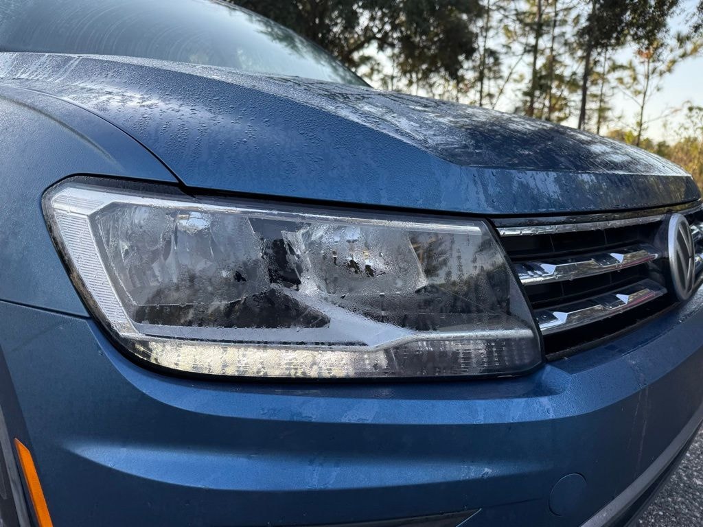 This Tiguan is well equipped with 4-Wheel Independent Suspension, AM/FM radio: SiriusXM, Automatic temperature control, Brake assist, Bumpers: body-color, Compass, Forward collision: FCW w/Autonomous Emergency Braking mitigation, Front Bucket Seats, Heated door mirrors, Heated Front Comfort Seats, Leather Shift Knob, Low tire pressure warning, Overhead airbag, Overhead console, Perforated V-Tex Leatherette Seating Surfaces, Power steering, Power windows, Rear reading lights, Rear window defroster, Remote CD player, Speed-sensing steering, Steering wheel mounted audio controls, Telescoping steering wheel, Trip computer, Variably intermittent wipers, 3.33 Axle Ratio, 3rd row seats: bench, 4-Wheel Disc Brakes, 6 Speakers, Air Conditioning, Alloy wheels, Delay-off headlights, Driver door bin, Driver vanity mirror, Dual front impact airbags, Dual front side impact airbags, Electronic Stability Control, Exterior Parking Camera Rear, Four wheel independent suspension, Front anti-roll bar, Front Center Armrest, Front dual zone A/C, Front reading lights, Fully automatic headlights, Heated front seats, Illuminated entry, Occupant sensing airbag, Outside temperature display, Panic alarm, Passenger door bin, Passenger vanity mirror, Power door mirrors, Power driver seat, Radio data system, Radio: Composition Media AM/FM/HD, Rear anti-roll bar, Rear seat center armrest, Rear window wiper, Remote keyless entry, Roof rack: rails only, Security system, Speed control, Split folding rear seat, Spoiler, Tachometer, Tilt steering wheel, Traction control, Turn signal indicator mirrors, and Wheels: 17" Wide Multi-Spoke 2-Tone Alloy.