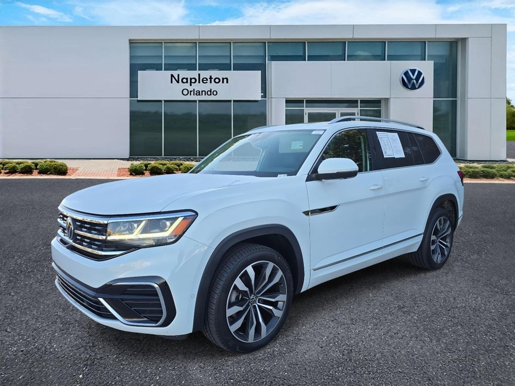CARFAX One-Owner. Priced below KBB Fair Purchase Price! Pure White 2021 4D Sport Utility Volkswagen Atlas 3.6L V6 SEL Premium R-Line AWD 3.6L VR6 8-Speed Automatic with Tiptronic Clean CARFAX.