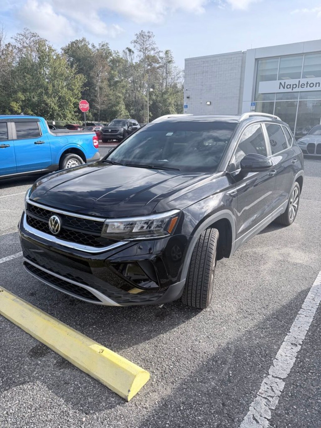 Recent Arrival! CARFAX One-Owner. Deep Black Pearl 2022 4D Sport Utility Volkswagen Taos 1.5T SE FWD 1.5L I4 Turbocharged DOHC 16V LEV3-SULEV30 158hp 8-Speed Automatic with Tiptronic Clean CARFAX.