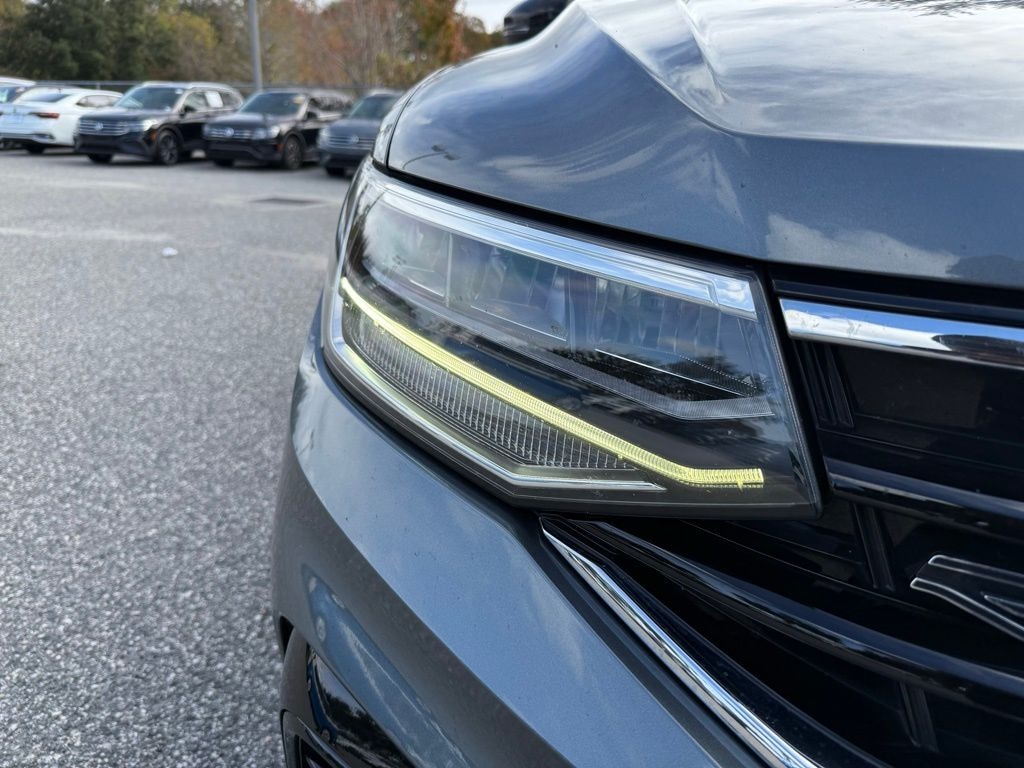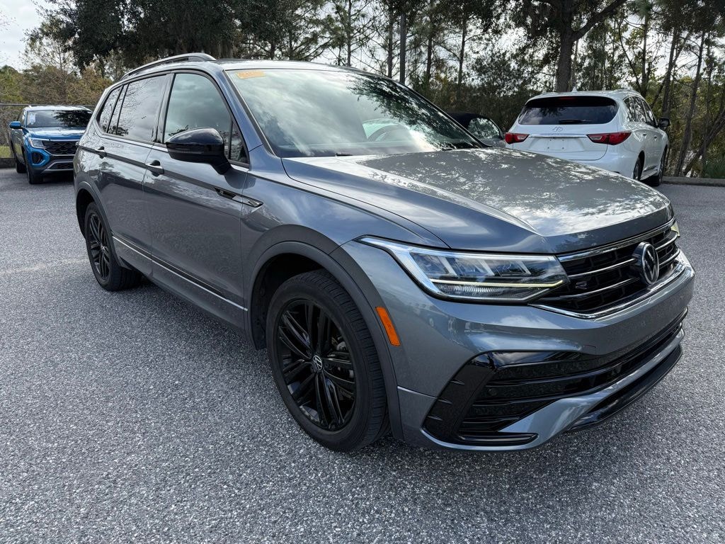 This Tiguan is well equipped with 4-Wheel Disc Brakes, 4-Wheel Independent Suspension, AM/FM radio: SiriusXM with 360L, Automatic temperature control, Brake assist, Compass, Driver vanity mirror, Dual front impact airbags, Dual front side impact airbags, Exterior Parking Camera Rear, Front Center Armrest, Heated door mirrors, Heated front seats, Leather Shift Knob, Low tire pressure warning, Overhead airbag, Overhead console, Passenger vanity mirror, Power windows, Radio: MIB3 Composition Media AM/FM/HD, Rear anti-roll bar, Rear window defroster, Rear window wiper, Speed-sensing steering, Split folding rear seat, Sport steering wheel, Steering wheel mounted audio controls, Tilt steering wheel, Turn signal indicator mirrors, Variably intermittent wipers, Wheels: 19" Black Twin 5-Spoke Alloy, 3.33 Axle Ratio, 3rd row seats: bench, 6 Speakers, ABS brakes, Air Conditioning, Alloy wheels, Auto-dimming Rear-View mirror, Bumpers: body-color, Delay-off headlights, Driver door bin, Electronic Stability Control, Emergency communication system: Car-Net, Four wheel independent suspension, Front anti-roll bar, Front Bucket Seats, Front dual zone A/C, Front reading lights, Fully automatic headlights, Heated Front Comfort Seats, Illuminated entry, Leather steering wheel, Occupant sensing airbag, Outside temperature display, Panic alarm, Passenger door bin, Perforated V-Tex Leatherette Seating Surfaces, Power door mirrors, Power driver seat, Power Liftgate, Power moonroof, Power steering, Radio data system, Rain sensing wipers, Rear reading lights, Rear seat center armrest, Remote keyless entry, Roof rack: rails only, Security system, Speed control, Spoiler, Tachometer, Telescoping steering wheel, Traction control, and Trip computer.