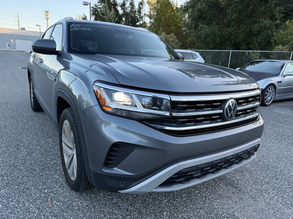 This Atlas Cross Sport is well equipped with 6 Speakers, Air Conditioning, AM/FM radio: SiriusXM with 360L, Electronic Stability Control, Emergency communication system: VW Car-Net Safe & Secure 5-year, Exterior Parking Camera Rear, Illuminated entry, Power driver seat, Power Liftgate, Power windows, Radio data system, Remote keyless entry, Security system, Standard Suspension, 3.60 Axle Ratio, 4-Wheel Disc Brakes, ABS brakes, Alloy wheels, Auto-dimming Rear-View mirror, Automatic temperature control, Brake assist, Bumpers: body-color, Compass, Delay-off headlights, Driver door bin, Driver vanity mirror, Dual front impact airbags, Dual front side impact airbags, Four wheel independent suspension, Front anti-roll bar, Front Bucket Seats, Front Center Armrest, Front dual zone A/C, Front fog lights, Front reading lights, Fully automatic headlights, Heated Comfort Front Bucket Seats, Heated door mirrors, Heated front seats, Leather Shift Knob, Low tire pressure warning, Occupant sensing airbag, Outside temperature display, Overhead airbag, Overhead console, Panic alarm, Passenger door bin, Passenger vanity mirror, Perforated V-Tex Leatherette Seating Surfaces, Power door mirrors, Power steering, Radio: MIB3 Composition Media w/8" Touchscreen, Rain sensing wipers, Rear anti-roll bar, Rear reading lights, Rear seat center armrest, Rear window defroster, Rear window wiper, Speed control, Speed-sensing steering, Split folding rear seat, Spoiler, Steering wheel mounted audio controls, Tachometer, Telescoping steering wheel, Tilt steering wheel, Traction control, Trip computer, Turn signal indicator mirrors, Variably intermittent wipers, and Wheels: 20" x 8J 5-Spoke Silver Painted Alloy.