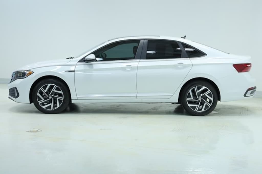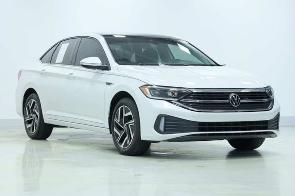 This Jetta is well equipped with Jetta 1.5T SEL, 4D Sedan, 1.5L I-4 DI DOHC Turbocharged, 8-Speed Automatic with Tiptronic, FWD, Pure White, 4-Wheel Disc Brakes, 9 Speakers, ABS brakes, Active Blind Spot Monitor, Air Conditioning, Alloy wheels, AM/FM radio: SiriusXM with 360L, Auto High-beam Headlights, Auto-dimming Rear-View mirror, Automatic temperature control, Brake assist, Bumpers: body-color, Delay-off headlights, Driver door bin, Driver vanity mirror, Dual front impact airbags, Dual front side impact airbags, Electronic Stability Control, Emergency communication system: VW Car-Net Safe & Secure 5-year, Exterior Parking Camera Rear, Front anti-roll bar, Front Bucket Seats, Front Center Armrest, Front dual zone A/C, Front reading lights, Front wheel independent suspension, Fully automatic headlights, Heated & Actively Ventilated Front Seats, Heated door mirrors, Heated front seats, Heated rear seats, Heated steering wheel, Illuminated entry, Leather Shift Knob, Leather steering wheel, Low tire pressure warning, Memory seat, Navigation System, Occupant sensing airbag, Outside temperature display, Overhead airbag, Overhead console, Panic alarm, Passenger door bin, Passenger vanity mirror, Power door mirrors, Power driver seat, Power moonroof: Panoramic, Power steering, Power windows, Radio data system, Radio: MIB3 Discover Media w/8" Touchscreen Nav, Rain sensing wipers, Rear anti-roll bar, Rear reading lights, Rear seat center armrest, Rear window defroster, Remote keyless entry, Security system, Speed control, Speed-sensing steering, Split folding rear seat, Steering wheel mounted audio controls, Tachometer, Telescoping steering wheel, Tilt steering wheel, Traction control, Trip computer, Turn signal indicator mirrors, Variably intermittent wipers, Ventilated front seats, Vienna Leather Seat Trim, and Wheels: 17" 2-Tone Machined Alloy.