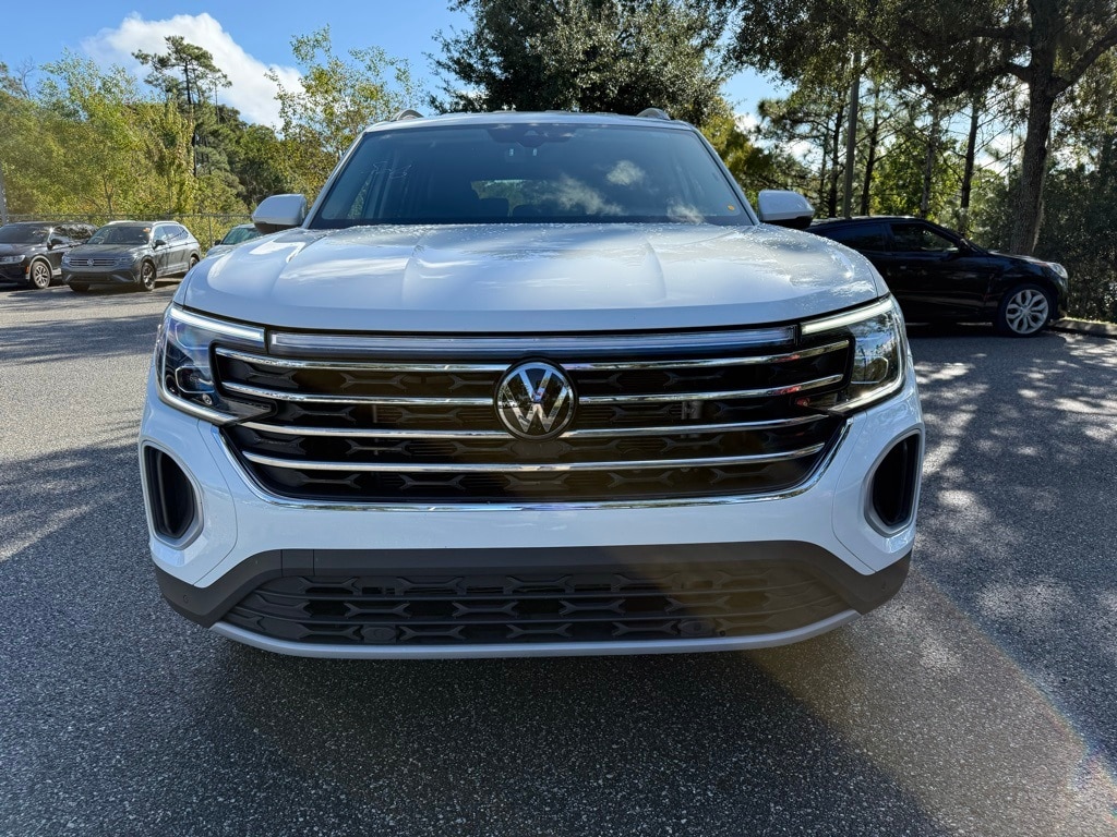 This Atlas is well equipped with Air Conditioning, Automatic temperature control, Driver door bin, Driver vanity mirror, Front dual zone A/C, Front reading lights, Heated door mirrors, Panic alarm, Power door mirrors, Power driver seat, Power steering, Rear air conditioning, Rear window defroster, Security system, Speed control, Spoiler, Turn signal indicator mirrors, 115V Power Outlet, 3rd row seats: split-bench, 4-Wheel Disc Brakes, 6 Speakers, ABS brakes, Alloy wheels, AM/FM radio: SiriusXM with 360L, Auto High-beam Headlights, Auto-dimming Rear-View mirror, Brake assist, Bumpers: body-color, Compass, Delay-off headlights, Dual front impact airbags, Dual front side impact airbags, Electronic Stability Control, Emergency communication system: VW Car-Net Safe & Secure 5-year, Exterior Parking Camera Rear, Four wheel independent suspension, Four-wheel Independent Suspension, Front anti-roll bar, Front Bucket Seats, Front Center Armrest, Front fog lights, Fully automatic headlights, Heated & Actively Ventilated Front Bucket Seats, Heated front seats, Heated steering wheel, Illuminated entry, Low tire pressure warning, Occupant sensing airbag, Outside temperature display, Overhead airbag, Overhead console, Passenger door bin, Passenger vanity mirror, Perforated V-Tex Leatherette Seating Surfaces, Power Liftgate, Power windows, Radio data system, Radio: MIB3 Composition Media, Rain sensing wipers, Rear anti-roll bar, Rear reading lights, Rear seat center armrest, Rear window wiper, Remote keyless entry, Speed-sensing steering, Split folding rear seat, Steering wheel mounted audio controls, Tachometer, Telescoping steering wheel, Tilt steering wheel, Traction control, Trip computer, Variably intermittent wipers, Ventilated front seats, and Wheels: 20" 2-Tone Machined Alloy.